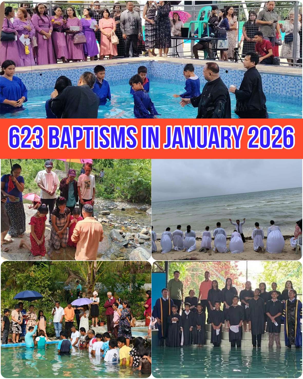 January 2026 Baptism report CMM- 45 CLC- 14 CVC- 24 DM/NDM- 122 NCMC- 30 NEMM/SCM- 233 SMM/ SCMM- 62 WMC- 9 WVC- 18 ZPM- 6 Samar -10 RAM – 20 NOC – 10 Total 623 |